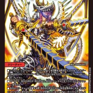 W・ブレイカー(このクリーチャーはシールドを2枚ブレイクする)相手のターン中、このクリーチャーが自分の手札から捨てられる時、墓地に置くかわりにバトルゾーンに置く。