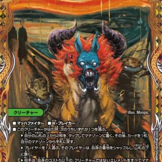 マナゾーンに置く時、このカードはタップして置く。進化Vー自分のマーフォーク1体とキマイラ1体を重ねた上に置く。このクリーチャーはブロックされない。W・ブレイカー(このクリーチャーはシールドを2枚ブレイクする)このクリーチャーがバトルゾーンを離れた時、クリーチャーをすべて破壊する。