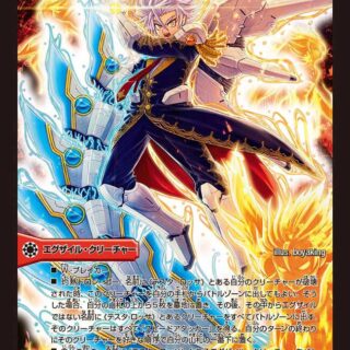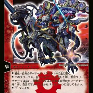 このクリーチャーのパワーは、自分と相手のシールド1枚につき+2000される。このクリーチャーは、パワーが6000以上の時、「W・ブレイカー」を得る。このクリーチャーは、パワーが15000以上の時、「T・ブレイカー」を得る。