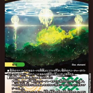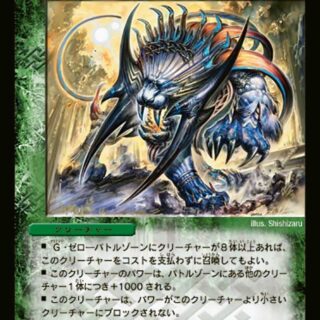 マナゾーンに置く時、このカードはタップして置く。このクリーチャーがタップされている間、自分の他のクリーチャーは「パワーアタッカー+1500」を得る。このクリーチャーで攻撃するかわりに、タップして次の能力を使ってもよい。バトルゾーンにある相手のクリーチャーを1体タップする。