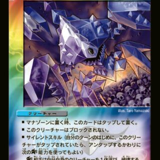 S・トリガーバトルゾーンにあるクリーチャーを1体選び、 持ち主のマナゾーンに置いてもよい。そうした場合、そのマナゾーンにあるカードの枚数とコストが同じかそれ以下の、 進化クリーチャーではないクリーチャーを1体、そのマナゾーンから選ぶ。そのプレイヤーはそのクリーチャーをバトルゾーンに出す。