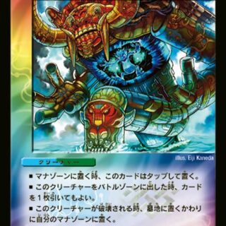 サイレントスキル(自分のターンのはじめに、このクリーチャーがタップされていたら、アンタップするかわりに次の能力を使ってもよい)バトルゾーンにある相手のクリーチャーを2体まで選び、タップする。