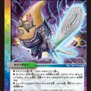 ブロッカー(このクリーチャーをタップして、相手クリーチャーの攻撃先をこのクリーチャーに変更してもよい)T・ブレイカー(このクリーチャーはシールドを3つブレイクする)このクリーチャーが出た時、自分の山札の上から4枚を墓地に置いてもよい。