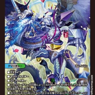 スター進化:レクスターズまたは水のクリーチャー1体の上に置く。(このクリーチャーが離れる時、かわりに一番上のカードが離れる)T・ブレイカーこのクリーチャーが攻撃する時、カードを2枚引く。その後、自分の手札が6枚以下なら、攻撃を中止する。