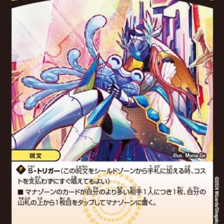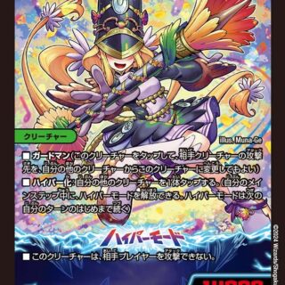 W・ブレイカー(このクリーチャーはシールドを2つブレイクする)アバレチェーン:自分のクリーチャーが攻撃する時、それがこのターン最初の攻撃なら、このターン、そのクリーチャーのパワーを +6000し、「パワード・ブレイカー」を与える。(「パワード・ブレイカー」を持つクリーチャーは、そのパワー6000ごとにシールドをさらに1つブレイクする)