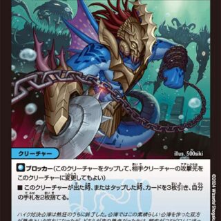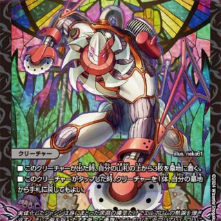 マッハファイター(このクリーチャーは、バトルゾーンに出たターンの間、タップまたはアンタップしているクリーチャーを攻撃できる)アバレチェーン:自分のクリーチャーが攻撃する時、それがこのターン最初の攻撃なら、相手のクリーチャーを1体選んでもよい。その選んだクリーチャーと、攻撃しているクリーチャーをバトルさせる。
