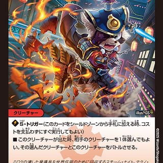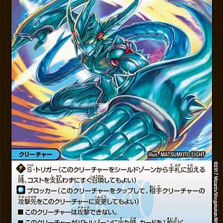 S・トリガー(この呪文をシールドゾーンから手札に加える時、コストを支払わずにすぐ唱えてもよい)自分の手札を1枚捨て、その後、カードを2枚引く。