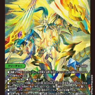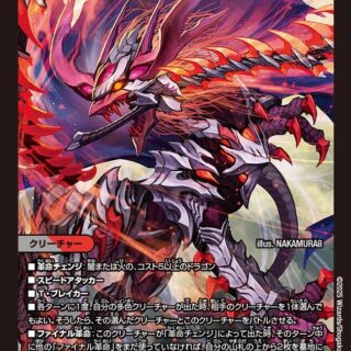 マナゾーンに置く時、このカードはタップして置く。進化V:自分の闇または火のクリーチャー2体の上に置く。T・ブレイカーメテオバーン:このクリーチャーが攻撃する時、このクリーチャーの下にあるカードを1枚選び墓地に置いてもよい。そうしたら、自分の墓地にある闇または火の呪文をコストの合計が7以下になるように好きな枚数選び、コストを支払わずに唱える。その後、その呪文を好きな順序で自分の山札の一番下に置く。