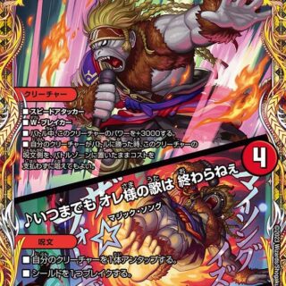 相手のターンの終わりに、そのターン相手がクリーチャーを3体以上召喚していれば、このクリーチャーを手札からバトルゾーンに出してもよい。W・ブレイカーこのクリーチャーがバトルゾーンに出た時または攻撃する時、自分の山札の上から1枚目を表向きにする。それがジョーカーズ・クリーチャーなら、バトルゾーンに出す。それ以外なら、手札に加える。