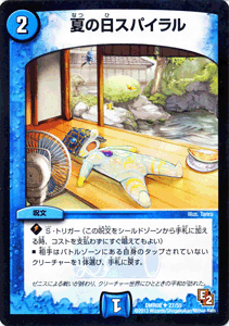 S・トリガー(この呪文をシールドゾーンから手札に加える時、コストを支払わずにすぐ唱えてもよい)相手はバトルゾーンにある自身のタップされていないクリーチャーを1体選び、手札に戻す。