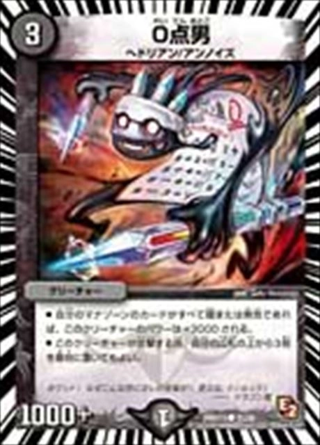 自分のマナゾーンのカードがすべて闇または無色であれば、このクリーチャーのパワーは+3000される。このクリーチャーが攻撃する時、自分の山札の上から3枚を墓地に置いてもよい。