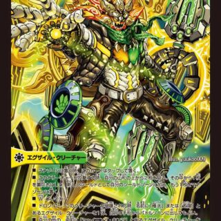 バトルゾーンに自分のドラゴンまたは自分のコスト7以上のクリーチャーがあれば、このクリーチャーは「パワーアタッカー+7000」と「W・ブレイカー」を得る。