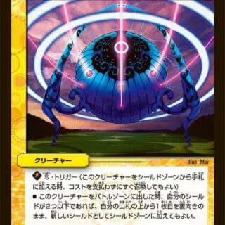 ブロッカー(相手クリーチャーが攻撃する時、このクリーチャーをタップして、その攻撃を阻止してもよい。その後、その相手クリーチャーとバトルする)このクリーチャーは、相手プレイヤーを攻撃できない。セイバー:アンノウン(自分のアンノウンが破壊される時、このクリーチャーをかわりに破壊してもよい)