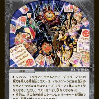 マナゾーンに置く時、このカードはタップして置く。超無限進化?光・闇・火がすべて揃うように自分のクリーチャーを1体以上選び、その上に置く。各ターンのはじめに、そのターンのプレイヤーは自身の多色ではないクリーチャーを1体選び、破壊する。W・ブレイカー(このクリーチャーはシールドを2枚ブレイクする)