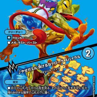 S・トリガー(この呪文をシールドゾーンから手札に加える時、コストを支払わずにすぐ唱えてもよい)バトルゾーンにある相手のタップされていないクリーチャーを1体選ぶ。相手はそのクリーチャーを自身の山札に加えてシャッフルする。その後、相手はカードを1枚引いてもよい。