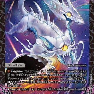 進化ー自分のエンジェル・コマンドまたはデーモン・コマンド1体の上に置く。このクリーチャーが攻撃する時、自分の山札の上から3枚を墓地に置いてもよい。そうした場合、相手のクリーチャーを1体破壊し、エンジェル・コマンドまたはデーモン・コマンド1体を自分の墓地から手札に戻す。W・ブレイカー(このクリーチャーはシールドを2枚ブレイクする)