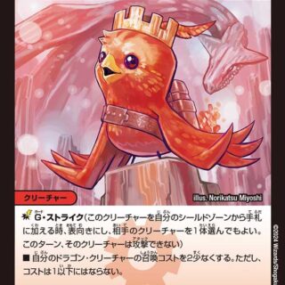 S・トリガー(このクリーチャーをシールドゾーンから手札に加える時、コストを支払わずにすぐ召喚してもよい)このクリーチャーをバトルゾーンに出した時、バトルゾーンにある相手のパワー2000以下のクリーチャーを1体選び、持ち主のマナゾーンに置く。
