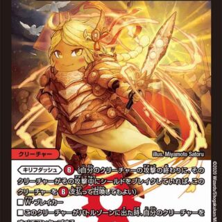 シンカライズ(このタマシードがクリーチャーであるかのように、この上に進化クリーチャーを置いてもよい)自分のターンの終わりに、次のうち、このゲーム中、このタマシードの効果でまだ選んでいないものを1つ選ぶ。▶相手のシールドを1つ選び、持ち主の墓地に置く。▶相手は自身の手札を2枚選び、捨てる。▶自分のシールドを2つ、手札に加える。ただし、その「S・トリガー」は使えない。▶自分はゲームに負ける。
