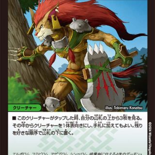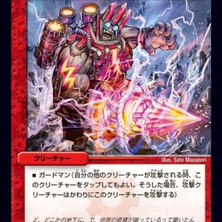 {GS} G・ストライク(このカードを自分のシールドゾーンから手札に加える時、表向きにし、相手のクリーチャーを1体選んでもよい。このターン、そのクリーチャーは攻撃できない)ブロッカー(このクリーチャーをタップして、相手クリーチャーの攻撃先をこのクリーチャーに変更してもよい)このクリーチャーが離れた時、相手のクリーチャーを1体選ぶ。次の自分のターンのはじめまで、そのクリーチャーは攻撃もブロックもできない。