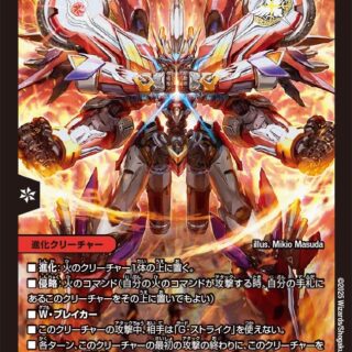 J・O・E 1 (このクリーチャーを、コストを1少なくして召喚してもよい。そうしたら、このターンの終わりに、これを自分の山札の一番下に置く。下に置いたら、カードを1枚引く)このクリーチャーがバトルゾーンに出た時、そのターン、自分の他のクリーチャー1体は「パワーアタッカー+4000」を得、シールドをさらに1つブレイクする。(攻撃中、「パワーアタッカー+4000」を持つクリーチャーのパワーを+4000する)