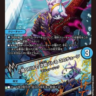 ブロッカーこのクリーチャーは、攻撃することができない。自分のターン中に相手のクリーチャーがバトルゾーンを離れた時、自分の山札の上から3枚をすべてのプレイヤーに見せてもよい。そうした場合、その中から、名前に「Z」とあるクリーチャーを好きな数自分の手札に加え、その後、残りを自分の墓地に置く。