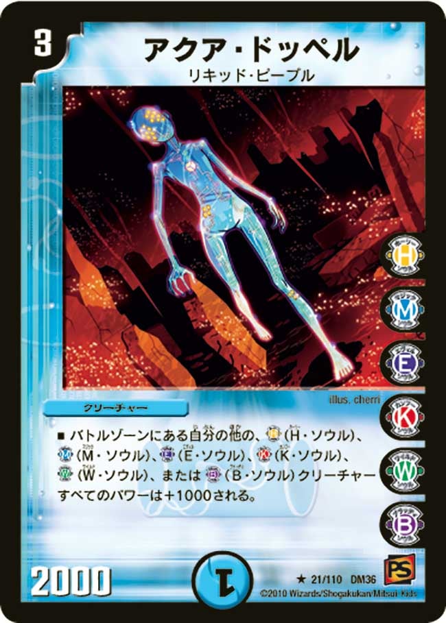 バトルゾーンにある自分の他の、(H・ソウル)、(M・ソウル)、(E・ソウル)、(K・ソウル)、(W・ソウル)、または(B・ソウル)クリーチャーすべてのパワーは+1000される。