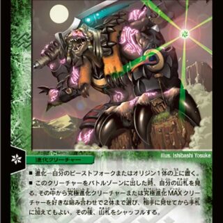 G・ゼロ – バトルゾーンにこのクリーチャーがリンクできる、カードが5枚リンクしている自分のゴッドがあれば、このクリーチャーをコストを支払わずに召喚してもよい。このクリーチャーが攻撃する時、このクリーチャーに含まれるカードの枚数よりコストが小さい相手のクリーチャーをすべて破壊する。その後、このクリーチャーに含まれるカードの枚数よりコストが小さいクリーチャーをすべて、自分の墓地からバトルゾーンに出す。W・ブレイカー(このクリーチャーはシールドを2枚ブレイクする)G・リンク《起源神プロトン》の左横、《起源神エレクトロン》の右横、または《起源神ニュートロン》の上側。