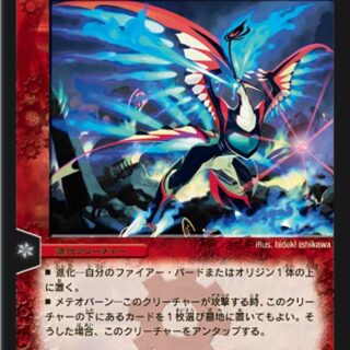 進化-自分のビーストフォークまたはオリジン1体の上に置く。このクリーチャーをバトルゾーンに出した時、自分の山札を見る。その中から究極進化クリーチャーまたは究極進化MAXクリーチャーを好きな組み合わせで2体まで選び、相手に見せてから手札に加えてもよい。その後、山札をシャッフルする。