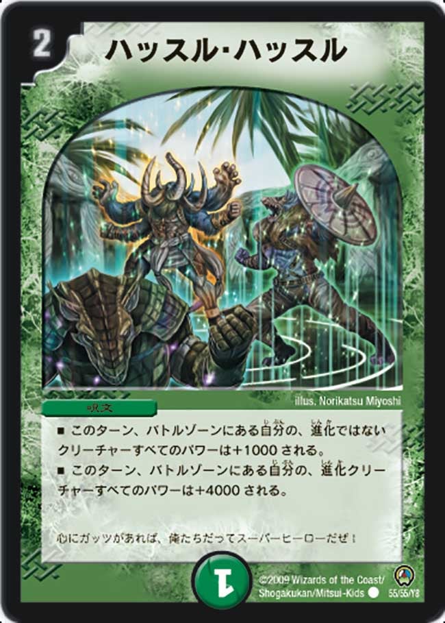 このターン、バトルゾーンにある自分の、進化ではないクリーチャーすべてのパワーは+1000される。このターン、バトルゾーンにある自分の、進化クリーチャーすべてのパワーは+4000される。