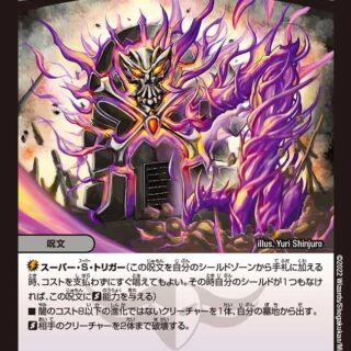 マナ進化-自然のクリーチャーを1体自分のマナゾーンから選び、このクリーチャーをその上に重ねつつバトルゾーンに出す。自分のターンの終わりに、相手のマナゾーンのカードが自分より多ければ、自分の山札の上から2枚をマナゾーンに置く。