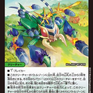 自分の火のドラゴンがバトルに勝った時、このクリーチャーを自分の手札からバトルゾーンに出してもよい。自分の他の火のクリーチャーが相手クリーチャーとバトルする時、かわりにこのクリーチャーにバトルさせてもよい。W・ブレイカー