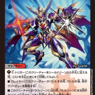進化-自分のジャイアント・インセクト1体の上に置く。W・ブレイカーバトルゾーンにあるパワー5000以上の自分の他のクリーチャーが相手プレイヤーを攻撃しブロックされなかった時、さらにもう1枚ブレイクする。