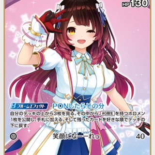 能力テキスト:このマスコットが付いているホロメンのHP+20。◆〈フワワ・アビスガード〉か〈モココ・アビスガード〉に付いていたら能力追加このマスコットが付いているホロメンのアーツに必要なエールの色すべてを◇にする。マスコットは、自分のホロメン1人につき1枚だけ付けられる。