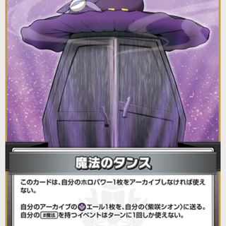 能力テキスト:このカードは、自分の手札がこのカードを含まずに6枚以下でなければ使えない。自分のデッキの上から4枚を見る。その中から、〈天音かなた〉と〈AZKi〉と〈沙花叉クロヱ〉を好きな枚数公開し、公開したホロメンを手札に加える。そして残ったカードを好きな順でデッキの下に戻す。LIMITED:ターンに1枚しか使えない。