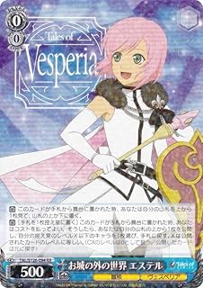 お城の外の世界 エステル(TAL/S126-094S)-『テイルズ オブ』シリーズサイド:種類:キャラレベル:0色:パワー:500ソウル:コスト:0レアリティ:SRトリガー:-特徴:冒険・ヴェスペリアフレーバー:-【自】 このカードが手札から舞台に置かれた時、あなたは自分の山札を上から1枚見て、山札の上か下に置く。【自】[手札を1枚控え室に置く] このカードが手札から舞台に置かれた時、あなたはコストを払ってよい。そうしたら、あなたは自分の山札の上から1枚を公開し、自分の控え室のレベルX以下のキャラを1枚選び、手札に戻す。Xは公開されたカードのレベルに等しい。(CXのレベルは0として扱う。公開したカードは元に戻す)