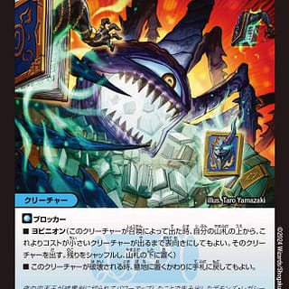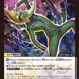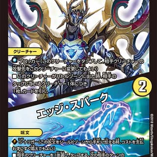 メカノゾア/Mechanozoa (4)(青)(青)アーティファクト・クリーチャー ― ロボット(Robot)・クラゲ(Jellyfish) EOE, コモンこのクリーチャーが戦場に出たとき、対戦相手がコントロールしていてアーティファクトやクリーチャーである1つを対象とする。それをタップし、それの上に麻痺(stun)カウンター1個を置く。(麻痺カウンターが置かれているパーマネントがアンタップ状態になるなら、代わりにそれの上から麻痺カウンター1個を取り除く。)ワープ(2)(青)(あなたの手札にあるこのカードを、ワープ・コストで唱えてもよい。次の終了ステップの開始時に、このクリーチャーを追放し、その後、後のターンに、これを追放領域から唱えてもよい。)5/5Illus.Daarken (66/0)