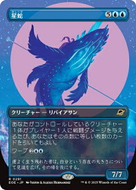 星蛇/Starwinder (5)(青)(青)クリーチャー ― リバイアサン(Leviathan) EOE, レアあなたがコントロールしているクリーチャー1体がプレイヤー1人に戦闘ダメージを与えるたび、あなたはその点数に等しい枚数のカードを引いてもよい。ワープ(2)(青)(青)(あなたの手札にあるこのカードを、ワープ・コストで唱えてもよい。次の終了ステップの開始時に、このクリーチャーを追放し、その後、後のターンに、これを追放領域から唱えてもよい。)7/7Illus.Cacho Rubione (306/0)