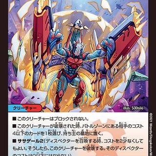 調査用メカン/Survey Mechan (4)アーティファクト・クリーチャー ― ロボット(Robot) EOE, アンコモン飛行呪禁(このクリーチャーは対戦相手がコントロールしている呪文や能力の対象にならない。)(10),このクリーチャーを生け贄に捧げる:1つを対象とし、プレイヤー1人を対象とする。これはその前者に3点のダメージを与える。その後者のプレイヤーはカード3枚を引き、3点のライフを得る。この能力を起動するためのコストは(X)少なくなる。Xは、あなたがコントロールしていて互いに異なる名前を持つ土地の数に等しい。1/3Illus.Johann Bodin (245/0)