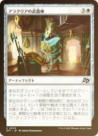 アラクリアの武器庫/Alacrian Armory (3)(白)アーティファクト DFT, アンコモンあなたがコントロールしているすべてのクリーチャーは+0/+1の修整を受け警戒を持つ。あなたのターンの戦闘の開始時に、あなたがコントロールしていて乗騎(Mount)や機体(Vehicle)である最大1体を対象とする。ターン終了時まで、そのパーマネントは、乗騎なら騎乗された状態になり、機体ならアーティファクト・クリーチャーになる。Illus.Artur Nakhodkin (2/)