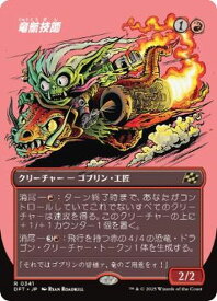 竜航技師/Draconautics Engineer (1)(赤)クリーチャー ― ゴブリン(Goblin)・工匠(Artificer) DFT, レア消尽 ― (赤):ターン終了時まで、あなたがコントロールしていてこれでないすべてのクリーチャーは速攻を得る。このクリーチャーの上に+1/+1カウンター1個を置く。(消尽能力はそれぞれ1回しか起動できない。)消尽 ― (3)(赤):飛行を持つ赤の4/4の恐竜(Dinosaur)・ドラゴン(Dragon)・クリーチャー・トークン1体を生成する。2/2Illus.Ryan Roadkill (540/)
