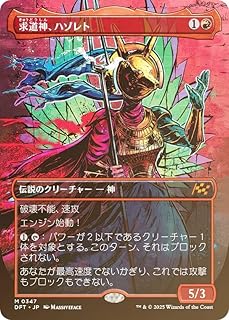 求道神、ハゾレト/Hazoret, Godseeker (1)(赤)伝説のクリーチャー ― 神(God) DFT, 神話レア破壊不能、速攻エンジン始動!(あなたが速度を持たないなら、1から始まる。速度はあなたの各ターンに1回、対戦相手がライフを失ったとき、1上がる。最高速度は4である。)(1),(T):パワーが2以下であるクリーチャー1体を対象とする。このターン、それはブロックされない。あなたが最高速度でないかぎり、これでは攻撃もブロックもできない。5/3Illus.Massiveface (546/)