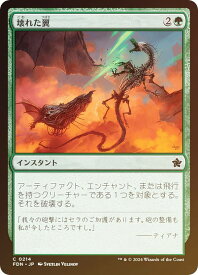 壊れた翼/Broken Wings (こわれたつばさ) (2)(緑)インスタント BLC, コモンアーティファクト、エンチャント、または飛行を持つクリーチャーである1つを対象とする。それを破壊する。Illus.Lars Grant-West (208/0)