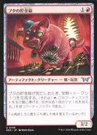 恐怖を喰うもの、ヴァルガヴォス/Valgavoth, Terror Eater (6)(黒)(黒)(黒)伝説のクリーチャー ― エルダー(Elder)・デーモン(Demon) DSK, 神話レア飛行、絆魂護法 ― 土地でないパーマネント3つを生け贄に捧げる。あなたがコントロールしていなかったカードがいずこかから対戦相手の墓地に置かれるなら、代わりにそれを追放する。あなたのターンの間、あなたは恐怖を喰うもの、ヴァルガヴォスにより追放されているカードをプレイしてもよい。あなたがこれにより呪文を唱えるなら、そのマナ・コストを支払うのではなく、それのマナ総量に等しい点数のライフを支払う。9/9Illus.Pig Hands (407/)