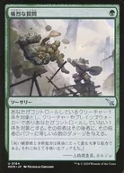 謎めいた外套/Cryptic Coat (2)(青)アーティファクト ― 装備品(Equipment) MKM, レア謎めいた外套が戦場に出たとき、あなたのライブラリーの一番上にあるカード1枚を偽装する。その後、謎めいた外套をそれにつける。(カードを偽装するとは、それを護法(2)を持つ2/2のクリーチャーとして裏向きの状態で戦場に出すことである。それがクリーチャー・カードなら、そのマナ・コストで、いつでも表向きにしてよい。)装備しているクリーチャーは+1/+0の修整を受け、ブロックされない。(1)(青):謎めいた外套をオーナーの手札に戻す。Illus.Julia Metzger (394/0)