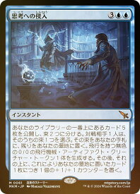 思考への侵入/Intrude on the Mind (3)(青)(青)インスタント MKM, 神話レアあなたのライブラリーの一番上にあるカード5枚を公開し、束2つに分ける。対戦相手1人は、そのうちの束1つを選ぶ。その束をあなたの手札に、残りをあなたの墓地に置く。飛行を持つ無色の0/0の飛行機械(Thopter)アーティファクト・クリーチャー・トークン1体を生成する。その後、それの上に、これによりあなたの墓地に置かれたカード1枚につき1個の+1/+1カウンターを置く。Illus.Francis Tneh (296/0)