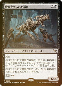 狩り立てられた暴骨/Hunted Bonebrute (2)(黒)クリーチャー ― スケルトン(Skeleton)・ビースト(Beast) MKM, レア威迫狩り立てられた暴骨が戦場に出たとき、対戦相手1人を対象とする。そのプレイヤーは白の1/1の犬(Dog)クリーチャー・トークン2体を生成する。狩り立てられた暴骨が死亡したとき、各対戦相手はそれぞれ3点のライフを失う。変装(1)(黒)6/2Illus.Maxime Minard (400/0)