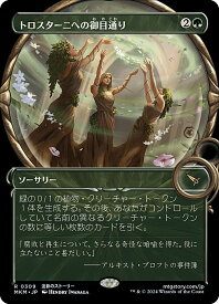 トロスターニへの御目通り/Audience with Trostani (2)(緑)ソーサリー MKM, レア緑の0/1の植物(Plant)クリーチャー・トークン1体を生成する。その後、あなたがコントロールしていて名前の異なるクリーチャー・トークンの数に等しい枚数のカードを引く。Illus.Hendry Iwanaga (309/0)