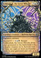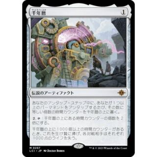 最深の裏切り、アクロゾズ/Aclazotz, Deepest Betrayal (3)(黒)(黒)伝説のクリーチャー ― コウモリ(Bat)・神(God) LCI, 神話レア飛行、絆魂これが攻撃するたび、各対戦相手はそれぞれカード1枚を捨てる。あなたは、そうできなかった対戦相手1人につき1枚のカードを引く。対戦相手が土地カード1枚を捨てるたび、あなたは飛行を持つ黒の1/1のコウモリ(Bat)・クリーチャー・トークン1体を生成する。これが死亡したとき、これをオーナーのコントロール下でタップ状態かつ変身させた状態で戦場に戻す。4/4死者の神殿/Temple of the Dead土地 LCI, 神話レア(《最深の裏切り、アクロゾズ/Aclazotz, Deepest Betrayal》から変身する。)(T):(黒)を加える。(2)(黒),(T):死者の神殿を変身させる。手札が1枚以下であるプレイヤーがいなければ起動できず、起動はソーサリーとしてのみ行う。Illus.Viko Menezes (316/0)