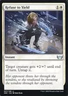 屈服の拒否/Refuse to Yield (くっぷくのきょひ) (1)(白)インスタント SNC, アンコモンクリーチャー1体を対象とする。ターン終了時まで、それは+2/+7の修整を受ける。それをアンタップする。Illus.Josh Hass (27/281)