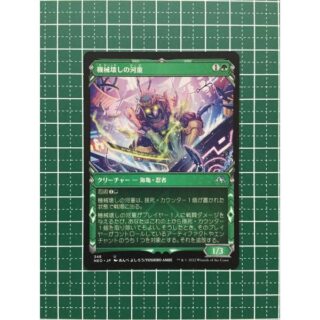 うろつく鼠/Nezumi Prowler (うろつくねずみ) (1)(黒)アーティファクト・クリーチャー ― ネズミ(Rat)・忍者(Ninja) NEO, アンコモン忍術(1)(黒)((1)(黒),あなたがコントロールしていてブロックされなかった攻撃クリーチャー1体を手札に戻す:あなたの手札にあるこのカードをタップ状態かつ攻撃している状態で戦場に出す。)うろつく鼠が戦場に出たとき、あなたがコントロールしているクリーチャー1体を対象とする。ターン終了時まで、それは接死と絆魂を得る。3/1Illus.マルオユキヒロ/YUKIHIRO MARUO (344/302)